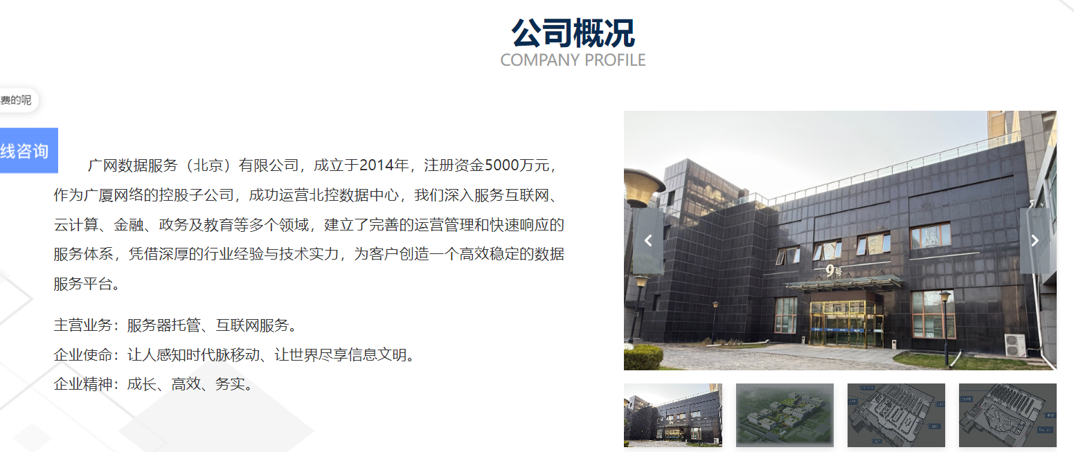 廣網(wǎng)數(shù)據(jù)服務(wù)(北京)有限公司,成立于2014年,注冊(cè)資金5000萬(wàn)元,作為廣廈網(wǎng)絡(luò)的控股子公司,成功運(yùn)營(yíng)北控?cái)?shù)據(jù)中心,我們深入服務(wù)互聯(lián)網(wǎng)、云計(jì)算、金融、政務(wù)及教育等多個(gè)領(lǐng)域,建立了完善的運(yùn)營(yíng)管理和快速響應(yīng)的服務(wù)體系,憑借深厚的行業(yè)經(jīng)驗(yàn)與技術(shù)實(shí)力,為客戶創(chuàng)造一個(gè)高效穩(wěn)定的數(shù)據(jù)服務(wù)平臺(tái)。