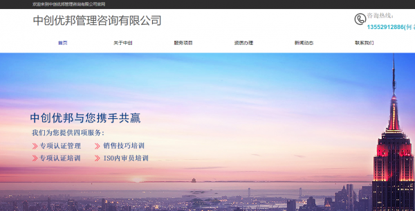 北京中創(chuàng)優(yōu)邦管理咨詢有限公司(簡稱中創(chuàng)優(yōu)邦),是一家專注于為中小企業(yè)提供專業(yè)管理咨詢與ISO認(rèn)證培訓(xùn)服務(wù)的企業(yè)管理咨詢機構(gòu)。其總部位于北京,專業(yè)為企業(yè)提供ISO9001、ISO14001、OHSAS18000、ISO/TS16949、ISO27001、ISO20000、ISO13485、ISO22000(HACCP)等國際管理體系認(rèn)證咨詢。截止到2016年底,已在機械設(shè)備、電子電氣、軌道交通、國家電網(wǎng)、研發(fā)、銷售、工程施工、物業(yè)服務(wù)、高新科技、政府單位等10多個重點行業(yè)、上千家企業(yè)提供了優(yōu)質(zhì)的管理咨詢服務(wù),積累了豐富的多行業(yè)、多領(lǐng)域、不同體制的企業(yè)咨詢項目經(jīng)驗。目前,公司在北京、河北、山西、內(nèi)蒙、山東、天津設(shè)有分公司。