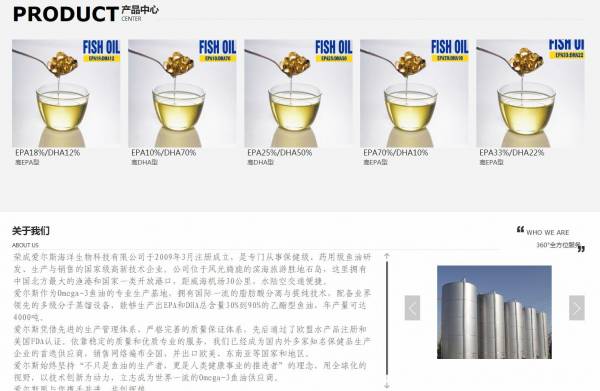 榮成愛*斯海洋生物科技有限公司選用我司企業(yè)食品行業(yè)的網(wǎng)站優(yōu)化產(chǎn)品,其SEO關(guān)鍵詞有 魚油,精制魚油,多烯魚油,榮成魚油,山東魚油。其特點(diǎn)是用很合適的展示方式、展示效果、站點(diǎn)框架,把客戶及其用戶很關(guān)心的問題突出表現(xiàn);并以簡(jiǎn)潔明朗的設(shè)計(jì)風(fēng)格,清晰展現(xiàn)公司水平實(shí)力,確保一秒抓住目標(biāo)用戶眼球,給用戶留下良好的第一印象。榮成愛*斯海洋生物科技有限公司成立于2009年,是經(jīng)榮成市市場(chǎng)監(jiān)督管理局審核的有資質(zhì)的公司,其統(tǒng)一社會(huì)信用代碼:9137108268**437216。公司地址:山東省威海市榮成市石島工業(yè)園龍騰北路109號(hào)。